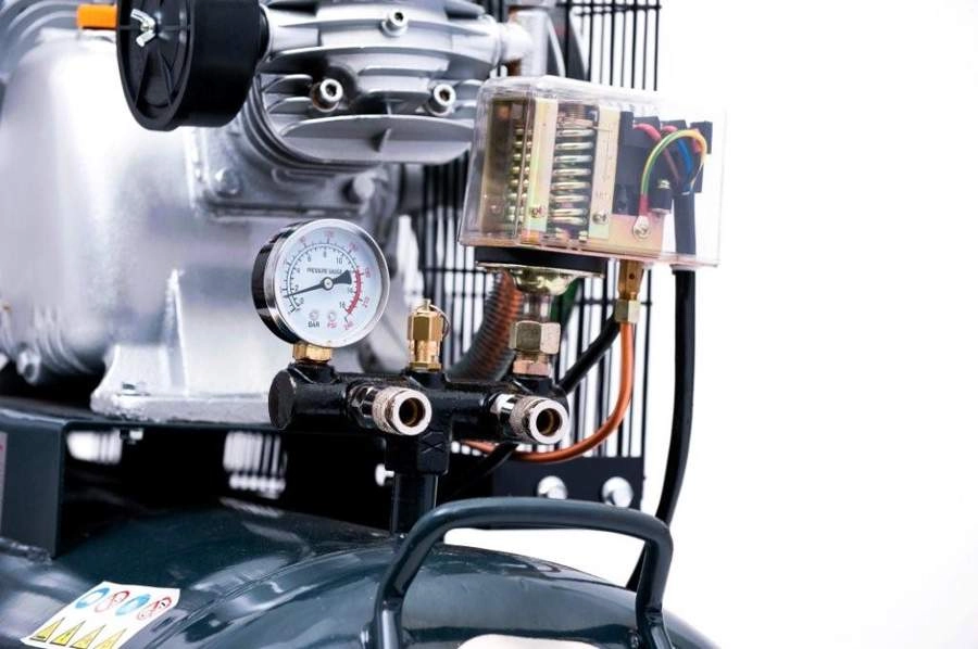 Kompresor ten wyposażony jest w pompę smarowany olejem, nadającą się długotrwałej pracy. W komplecie z manometrem wskazującym ciśnienie zbiornika jak i reduktorem ciśnieniowym z manometrem z ułatwieniem / odciążeniem rozruchu i zabezpieczeniem termicznym silnika. Każdy kompresor kupiony u nas, jest fabrycznie zalewany odpowiednią ilością oleju.