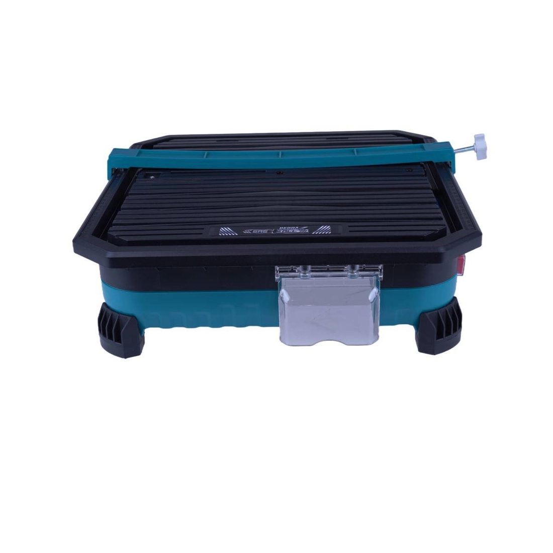 Silnik zasilany baterią z systemu jednej baterii osiąga maksymalnie 3800RPM, co pozwala na efektywne cięcie płytek do 24mm grubości pod kątem 90˚ lub 16mm pod kątem 45˚. Wbudowana tacka/zbiornik na wodę zapewnia, że podczas cięcia nie wytworzymy chmury pyłów jak w przypadku cięcia zwykłą szlifierką kątową.