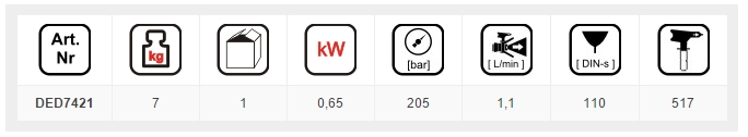 DEDRA DED7421 to agregat do malowania natryskowego. Jest produktem zaprojektowanym do rozpylania lakierów na bazie: wody, substancji ochronnych do drewna, substancji gruntujących metal. Farb lateksowych, emalii olejnych, emalii akrylowych, alkidowych jak również bejc i innych powłok nieściernych przeznaczonych do malowania techniką natryskową. Elektronarzędzie może współpracować z dyszami o różnym wymiarze. Malowanie hydrodynamiczne polega na sprężeniu farby i natrysku bez użycia powietrza na malowane powierzchnie, jest tańsze i szybsze niż malowanie wałkiem lub pędzlem. Malowanie dużych powierzchni w jednym kolorze np. mieszkań, garaży, sklepów, konstrukcji stalowych, hal przemysłowych zajmuje 4krotnie mniej czasu niż malowanie sposobem tradycyjnym. Hydrodynamiczne agregaty malarskie służą do malowania praktycznie wszystkich typowych podłoży budowlanych m.in. ścian wewnątrz i na zewnątrz budynków mieszkalnych i przemysłowych.