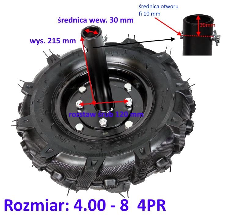 MASTERCUT BK55 8001017 KOŁA POMPOWANE GUMOWE POMOCNICZE Z OSIAMI 30mm 4.00-8 16" ZESTAW PARA DO GLEBOGRYZARKI MASTERCUT BK 8001017