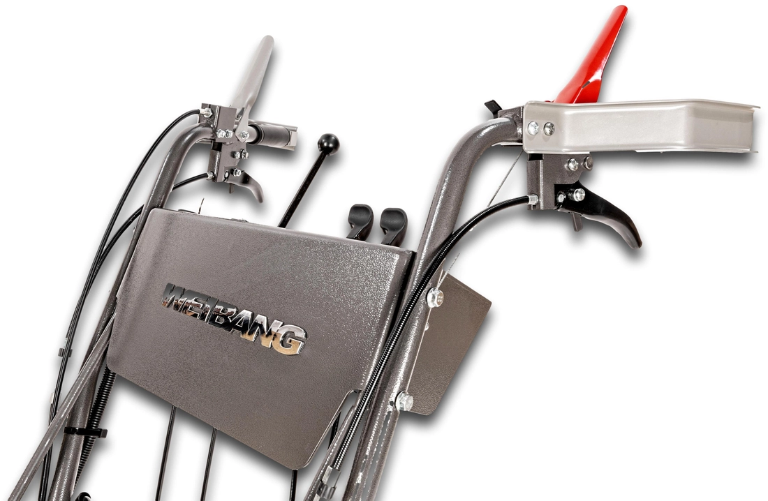 Konstrukcja kosiarki opiera się na wysoko wytrzymałej stalowej ramie, co gwarantuje długą żywotność urządzenia. Dodatkowo, powłoka proszkowa na powierzchni chroni kosiarkę przed korozją oraz uszkodzeniami mechanicznymi. To maszyna przeznaczona do koszenia dużych obszarów. Świetnie nadaje się do koszenia trawy do wysokości 40 cm oraz bez problemu poradzi sobie z samosiejkami drzew do średnicy 1cm oraz krzakami. Efektywne cięcie trawy zapewnia masywny nóż mulczujący WEIBANG. Dzięki zastosowaniu płozy prowadzącej oraz nisko położonemu środkowi ciężkości zapewniającemu perfekcyjne wyważenie, kosiarka perfekcyjnie utrzymuje kierunek jazdy i pozwala na wygodne pokonywanie terenu. Dla uzyskania komfortu pracy operatora kierownica posiada 6-stopniową regulację wysokości położenia.