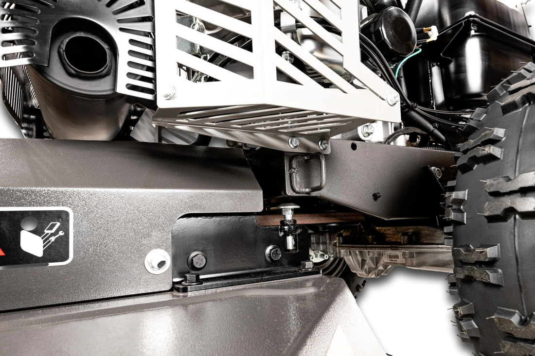 • Agregat kosiarki WEIBANG WBBC7623LC zaprojektowano z myślą o możliwości dostosowania i można go obracać o 12,5% zarówno w górę, jak i w dół, aby poruszać się po nierównym terenie bez skalpowania. Dodatkowo pokład można wygodnie zdemontować, co ułatwia czyszczenie i konserwację. Regulowane szyny ślizgowe agregatu* dodatkowo zwiększają elastyczność, umożliwiając podnoszenie lub obniżanie wysokości koszenia w zależności od warunków