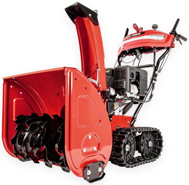 Duże i mocne gąsienice w połączeniu z elastyczną gumą typu Snow zapewniają optymalne poruszanie się odśnieżarki w trudnych warunkach terenowych.