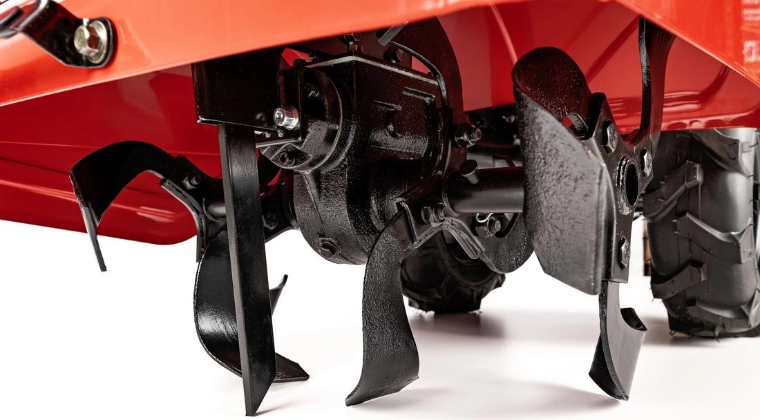 Koła ułatwiają również przetaczanie maszyny do miejsca pracy, która wykonywana tą glebogryzarką jest lekka i efektywna.