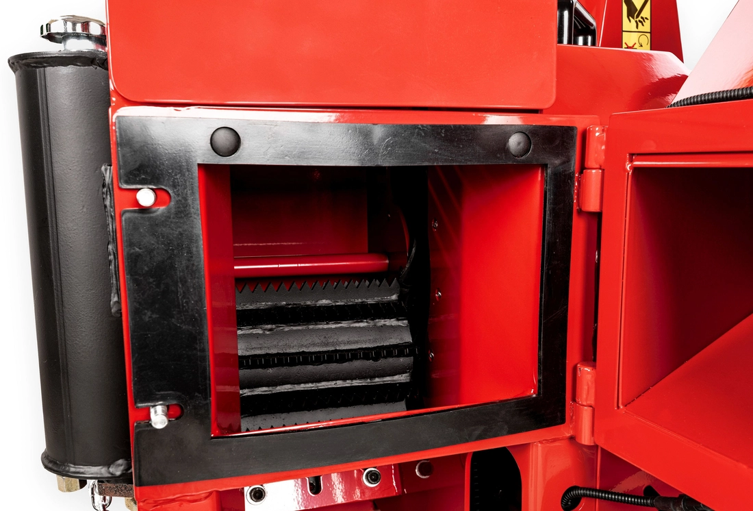 Każdy kto choć raz wycinał lub rozdrabniał samosiejki albo gałęzie z kolcami doceni mechanizm wciągający materiał do tego rozdrabniacza. Dzięki obrotowemu walcowi nie trzeba wpychać na siłę gałęzi do komory tnącej. Rębak Cedrus RB05 PRO HE został wyposażony w wałek wciągający gałęzie, napędzany silnikiem hydraulicznym.