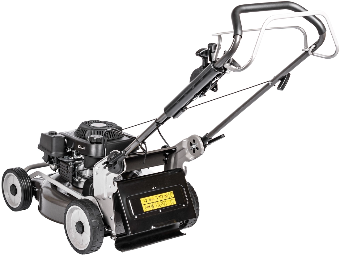 Kosiarka spalinowa ze stalową obudową pokrytą antykorozyjną farbą chroni maszynę przed korozją na długie lata. Przenoszenie napędu za pomocą wałka sprawia, że układ napędowy kosiarki jest wyjątkowo trwały i bezobsługowy. Kosiarka waży 46 kg wyposażona jest w silnik Loncin o mocy 6,5 KM i pojemności skokowej 196 cm3 stosowany również w innych maszynach ogrodowych np. glebogryzarkach. Kosiarka posiada funkcje mielenia,  wyrzutu bocznego i tylnego oraz posiada 3 biegi regulacji prędkości jazdy.
