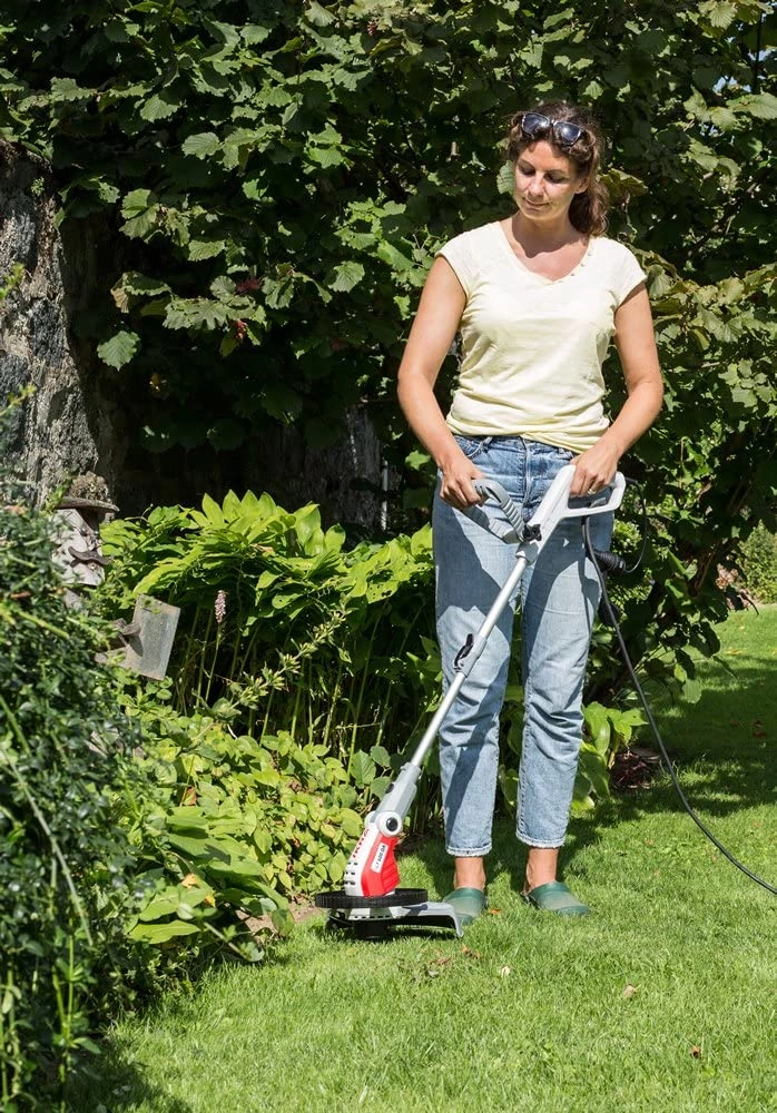 Uniwersalna kosa elektryczna marki IKRA do wymagających prac przydomowych. Silnik o mocy 600W. Wykaszarka przeznaczona jest do podcinania trawy i chwastów w miejscach trudno dostępnych dla kosiarek,np: w pobliżu ścian budynków, ogrodzeń, wokół drzew i krzewów, krawędzi ścieżek itp. Urządzenie jest poręczne, posiada regulowany uchwyt i możliwość zmiany kąta głowicy, co znacząco wpływa na komfort pracy.