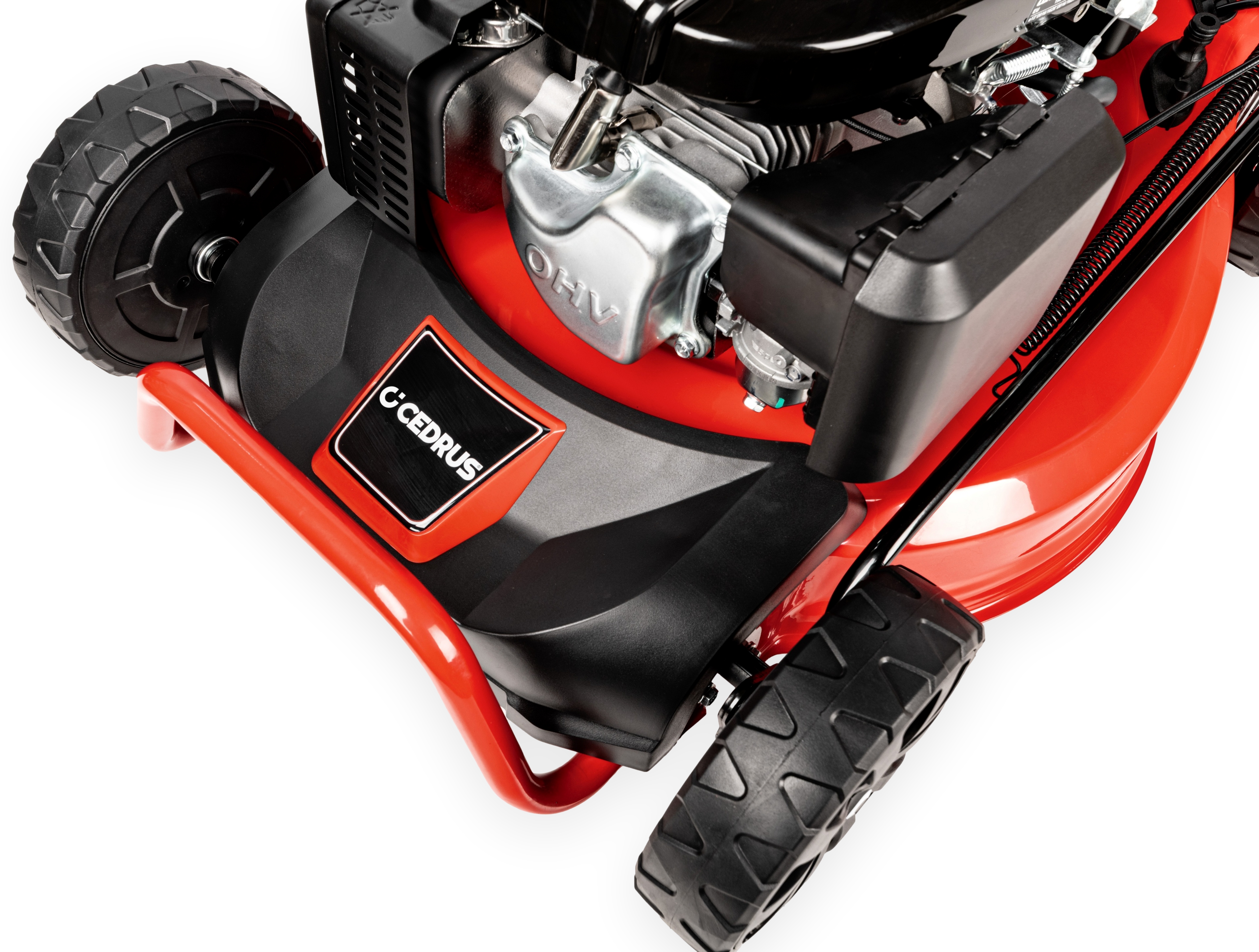 - Przedni uchwyt ułatwiający czyszczenie kosiarki