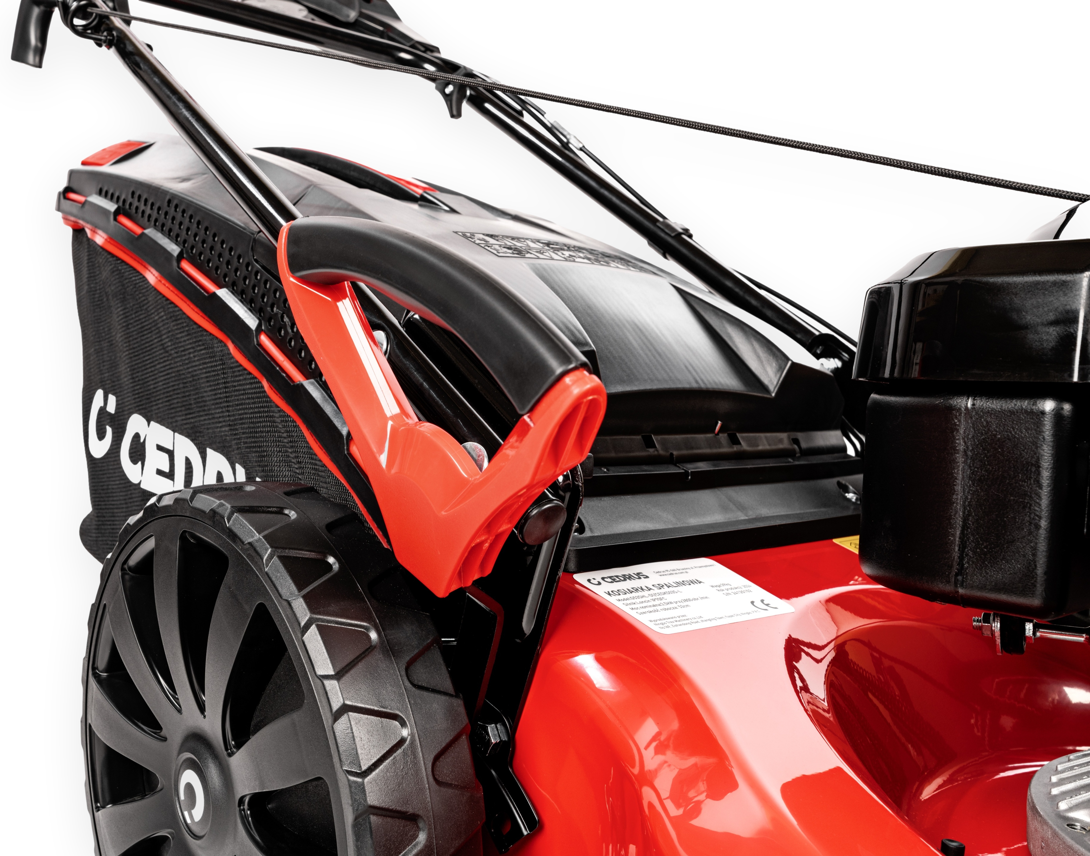 Kosiarka spalinowa Cedrus KS53S-L to model wyposażony w napęd. Wszystkie elementy naszych nowych kosiarek serii KS zostały starannie dobrane i sprawdzone, aby każdy użytkownik mógł się cieszyć ich niezawodnością i jakością. Kosiarka CEDRUS KS53S-L posiada silnik Loncin o mocy 6,5 KM , kosz o pojemności 65l ze wskaźnikiem napełnienia, centralną regulację wysokości koszenia, złącze do mycia podwozia kosiarki. Obudowa układu koszącego wykonana jest ze stali, a jej szerokość robocza wynosi 53cm. Na uchwycie zamontowane są dwie dźwignie jedna służy do regulacji obrotów silnika, druga to dźwignia ssania. Uchwyt wyposażony jest także w miejsce na kubek. Łatwość manewrowania zapewniają duże tylne koła oraz dobre wyważenie maszyny. Wszystkie koła są łożyskowane.