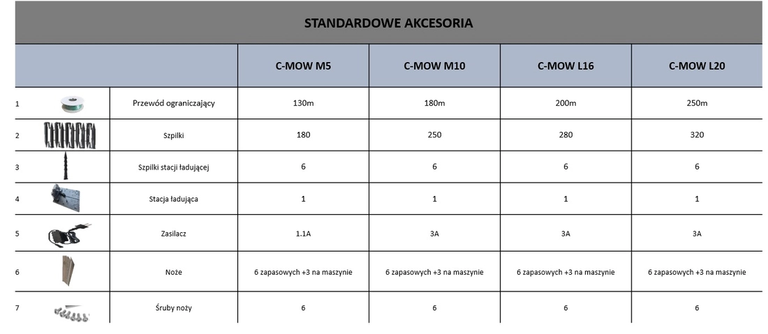 Każda kosiarka automatyczna Cedrus C-MOW wyposażona jest w standardzie w: