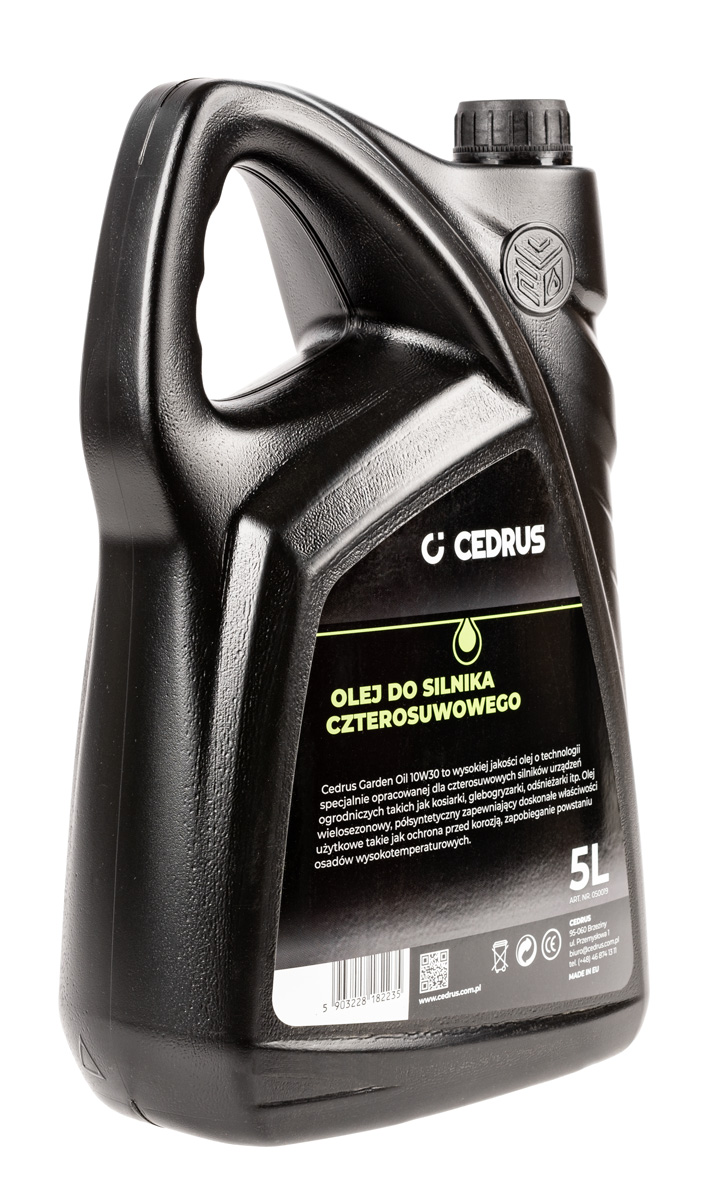 Cedrus Garden Oil 10W30 to wysokiej jakości olej o technologii specjalnie opracowanej dla cztero-suwowych silników urządzeń ogrodniczych takich jak kosiarki, glebogryzarki, odśnieżarki itp.