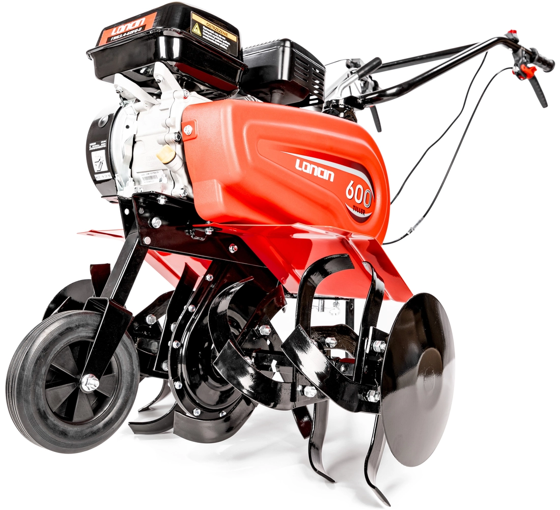 Glebogryzarka LONCIN L82 1WG3.4-60FQ-D z silnikiem LONCIN o mocy 6.5 KM .Glebogryzarka spalinowa LONCIN 600 . To maszyna przeznaczona dla profesjonalistów: szkółkarzy, ogrodników, firm usługowych. Specjalnie wyprofilowane noże spulchniające, w połączeniu z mocnym silnikiem, zapewniają wydajne przygotowanie gleby - część robocza posiada 6 gwiazd roboczych, hartowanych noży tnących osadzonych na obrotowym wale, które samoczynnie wgryzają się w glebę. Mocny silnik oraz noże robocze wykonane z wysokiej jakości stali gwarantują długie i bezproblemowe użytkowanie glebogryzarki LONCIN. Dzięki kołom transportowym, będącym w komplecie, przemieszczanie naszej glebogryzarki jest łatwe i nie wymaga wysiłku.