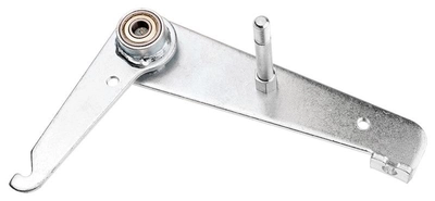 To kompletny, metalowy uchwyt z ramieniem i łożyskowaniem, który dba o właściwy naciąg paska napędowego w zamiatarce. Dzięki niemu: