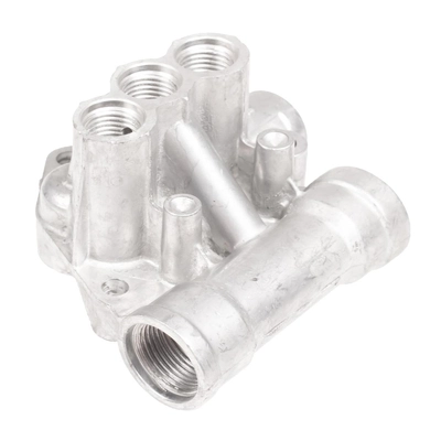 Króciec pompy (kolektor/korpus przyłączy) to element hydrauliczny z gwintowanymi portami, który rozdziela i uszczelnia przepływ wody w sekcji pompy. Łączy przewód dopływu wody z sekcją roboczą oraz kieruje medium do wyjścia wysokociśnieniowego.