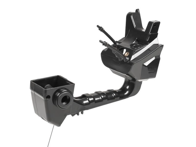 - Górny i boczne fragmenty uchwytu zawierają otwory oraz gniazda montażowe dla śrub, trzpieni i prowadnic. Dzięki nim można prawidłowo poprowadzić linki gazu, wyłącznik zapłonu oraz inne akcesoria sterujące.