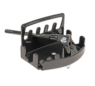 Element wykonany jest z grubej, tłoczonej stali, zabezpieczonej czarną powłoką lakierniczą odporną na korozję i uszkodzenia mechaniczne. Gwintowany trzpień oraz przegub śrubowy zapewniają pewne połączenie z pozostałymi częściami układu regulacji wysokości w wertykulatorze CEDWR02R.