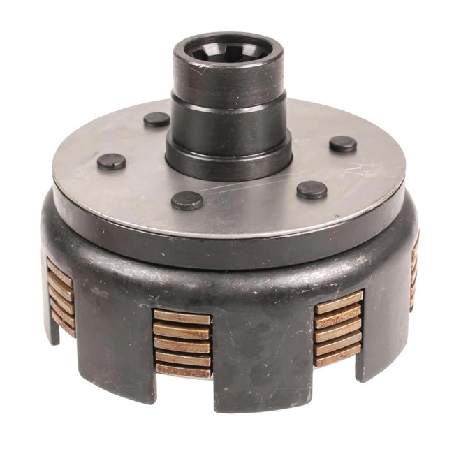 - Wielotarczowa konstrukcja cierna zapewnia dużą powierzchnię roboczą, co przekłada się na lepsze przenoszenie momentu obrotowego oraz mniejsze jednostkowe zużycie okładzin.
