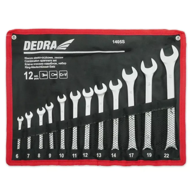 Zestaw kluczy DEDRA 1405S dostarczany jest w praktycznym, solidnym pokrowcu, który ułatwia organizację narzędzi i chroni je przed zgubieniem. Pokrowiec umożliwia łatwe przenoszenie zestawu na miejsce pracy, a także wygodne przechowywanie w warsztacie, garażu czy bagażniku samochodu. Dzięki temu wszystkie klucze są zawsze pod ręką, gotowe do użycia w każdej sytuacji – zarówno podczas nagłych napraw, jak i planowanych prac serwisowych.