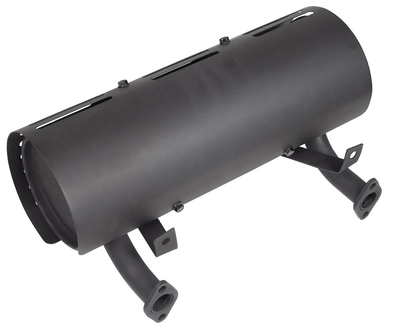 - Konstrukcja: tłumik skrzynkowy ze zintegrowanymi kolektorami i osłoną