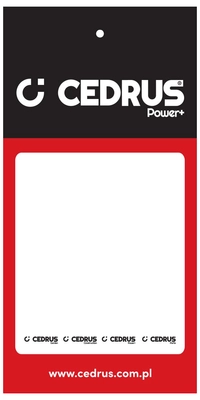 - Przeznaczenie: oznaczenie regałów i haków z produktami Cedrus w sklepach, serwisach, punktach sprzedaży