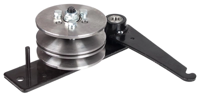 Element ten łączy w sobie solidne koło pasowe z mocnym ramieniem montażowym oraz łożyskowaniem, co ułatwia szybki montaż i zapewnia właściwe naprężenie paska napędowego. Dzięki temu użytkownik zyskuje nie tylko wysoką trwałość, ale także komfort i bezpieczeństwo obsługi maszyny.