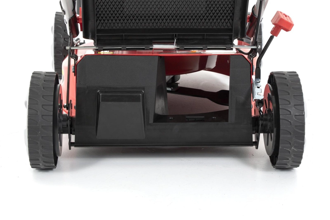 Łożyskowane koła zapewniają płynne i ciche poruszanie się po powierzchni trawnika, co sprawia, że koszenie staje się bardziej komfortowe i przyjemne.