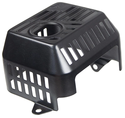 Produkt montuje się bezpośrednio na tłumiku silnika Y170V, wykorzystując fabryczne punkty mocowania w konstrukcji silnika. Precyzyjnie ukształtowane mocowania z otworami pod śruby umożliwiają szybką i stabilną instalację, bez konieczności jakichkolwiek przeróbek. Osłona chroni przed przypadkowym dotknięciem rozgrzanego tłumika, a jednocześnie zabezpiecza go przed uderzeniami kamieni, gałęzi i innych elementów spotykanych w czasie pracy urządzeń ogrodniczych.