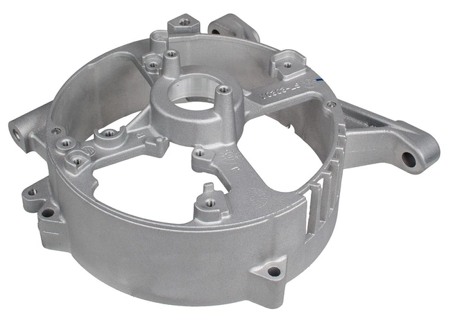 Osłona jest metalowym odlewem o wysokiej wytrzymałości mechanicznej. Taka konstrukcja dobrze znosi wibracje, uderzenia oraz zmienne warunki pracy, co przekłada się na długą trwałość i stabilne mocowanie alternatora.