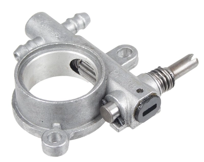 - współpracuje z mechanizmem napędowym (wałek, krzywka) przekazującym ruch obrotowy z silnika, aby pompować olej w takt obrotów pilarki.