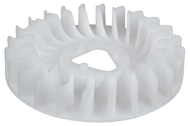 - Aktywne chłodzenie powietrzem – łopatki działają jak mała turbina, która wymusza intensywną cyrkulację powietrza. Zapobiega to przegrzewaniu się silnika, szczególnie przy długotrwałej pracy pod obciążeniem, np. w agregatach prądotwórczych czy maszynach ogrodniczych.