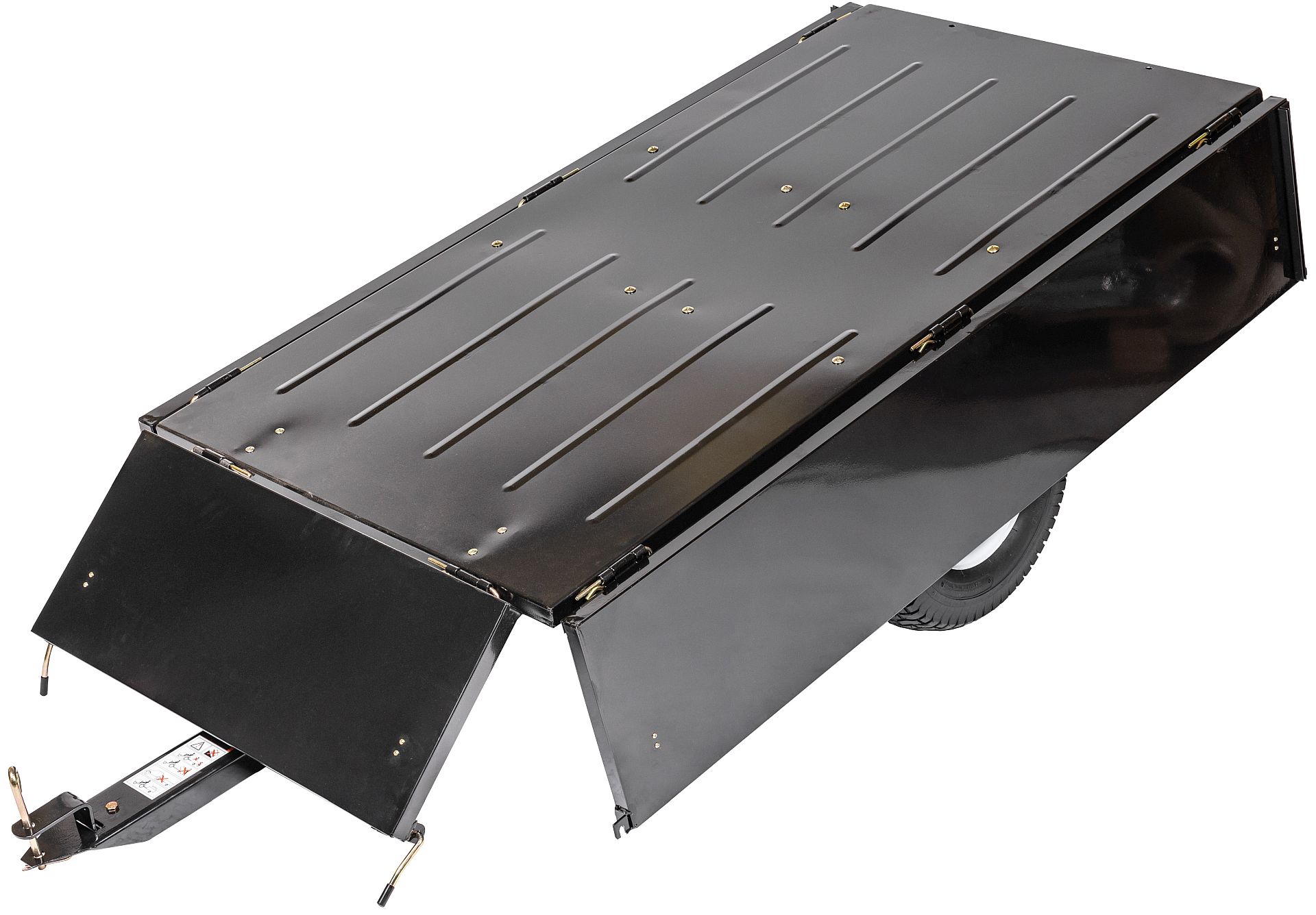 Wysokiej jakości przyczepka ogrodowa, możliwa do zamontowania w traktorkach ogrodowych lub podobnych urządzeniach. Zdejmowana tylna burta ułatwiająca załadunek i rozładunek. Możliwość kiprowania. Mocowanie do kosiarki traktorowej za pomocą sprzęgu przyczepowego. Idealna do transportu trawy, ziemi, żwiru, piasku, roślin, kamieni, nawozów czy narzędzi podczas prac ogrodowych.Pasuje do większości kosiarek traktorowych dostępnych na rynku. Ze względu na swój ciężar własny oraz potencjalną nośność nie zaleca się, aby była holowana przez traktorki z silnikiem jednocylindrowym. Wykonana z wysokiej jakości stali.
