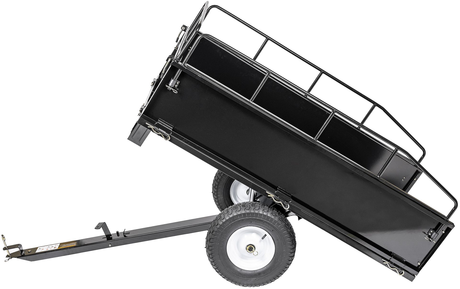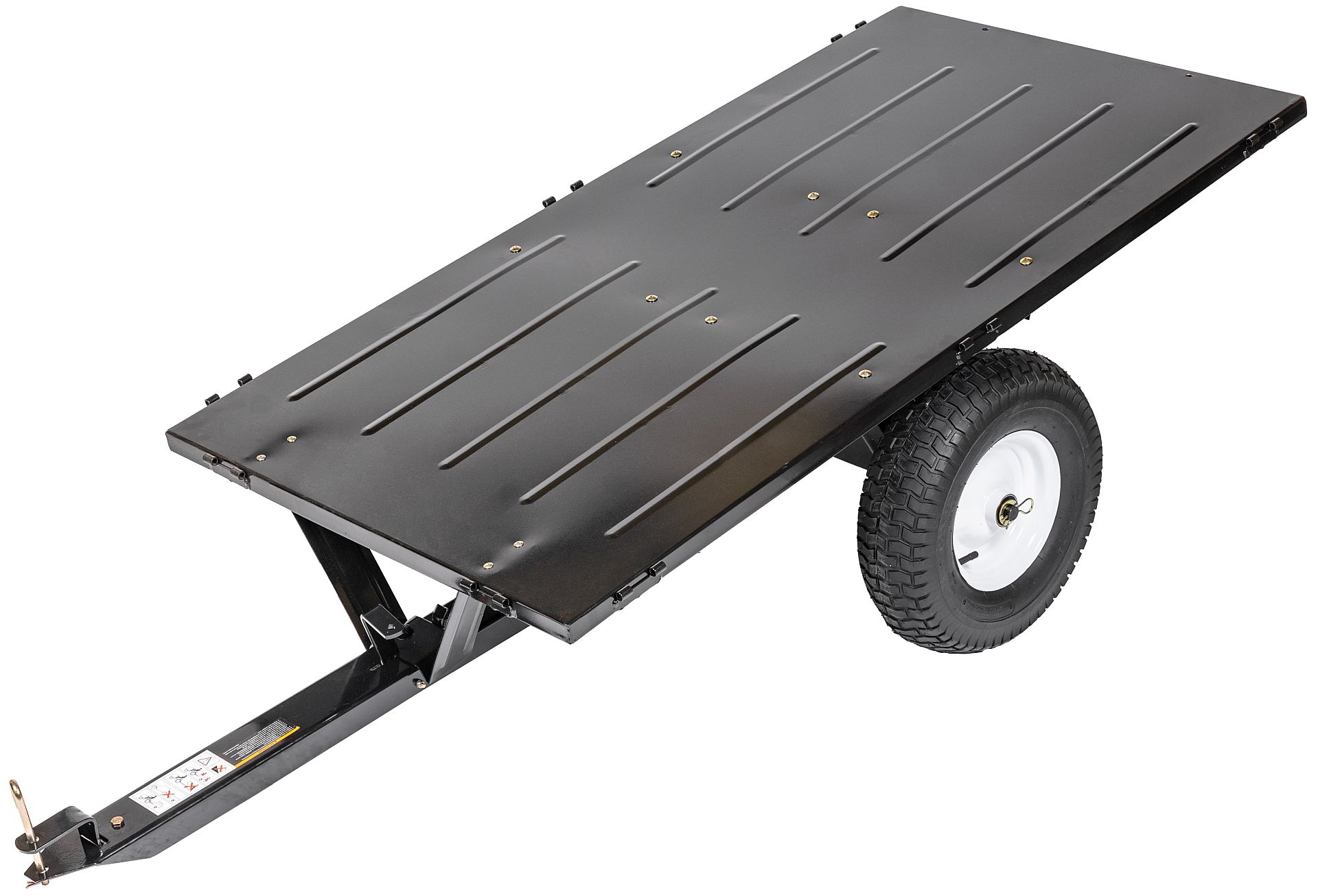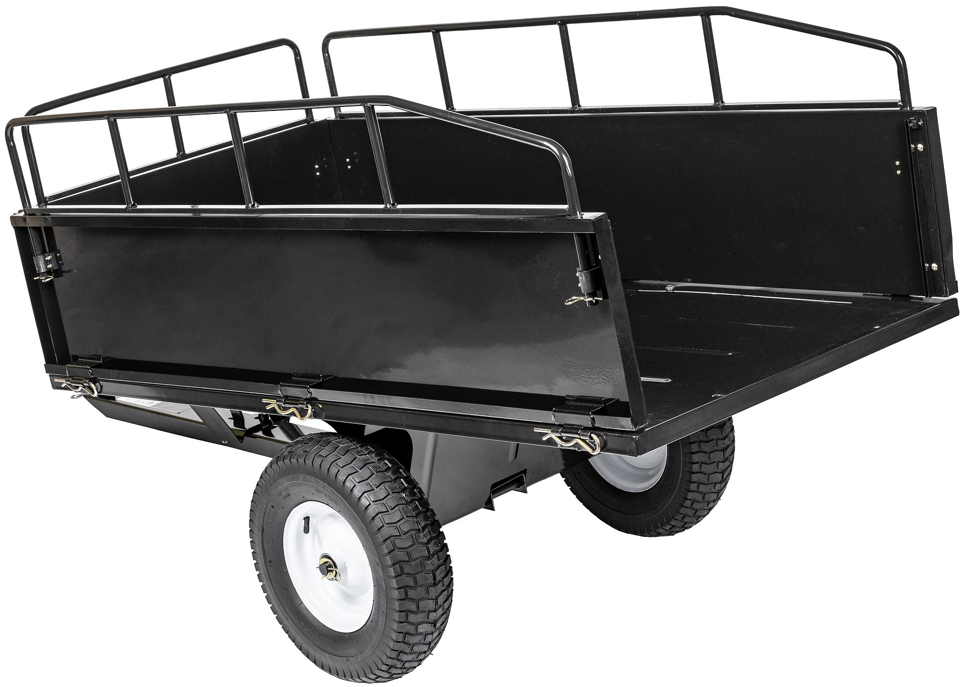 - Wysokiej jakości przyczepka ogrodowa, możliwa do zamontowania w traktorkach ogrodowych lub podobnych urządzeniach. Zdejmowana tylna burta ułatwiająca załadunek i rozładunek. Możliwość kiprowania.