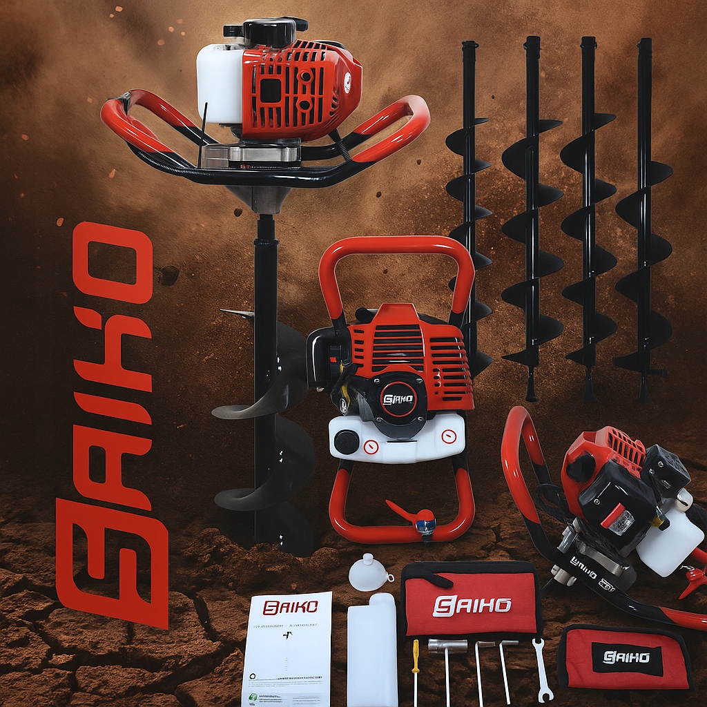 Wiertnica spalinowa SAICO SW52 o mocy 2.45 KM i pojemności 49 cm³. W zestawie 3 wiertła (100, 150, 200 mm) GRATIS !!! . Idealna do sadzenia, słupków i prac ogrodowo-budowlanych.