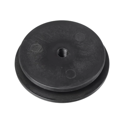 Element ten wykonany jest z wysokiej jakości, wytrzymałego tworzywa odpornego na uszkodzenia mechaniczne, zmiany temperatury i czynniki atmosferyczne. Centralny otwór z gwintem umożliwia pewne zamocowanie pierścienia do konstrukcji kosiarki, co zapewnia stabilność i bezpieczeństwo użytkowania w długim okresie.