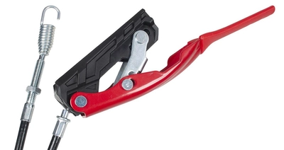 Dźwignia sprzęgła z linką w glebogryzarce Cedrus CEDRUSGL50 to element łączący operatora z mechanizmem napędowym maszyny. Po jednej stronie znajduje się wygodna, profilowana manetka montowana na uchwycie kierownicy, połączona z linką w osłonie (pancerzu). Po drugiej stronie linka zakończona jest sprężyną i odpowiednimi końcówkami, które współpracują z mechanizmem sprzęgła przy przekładni napędowej.