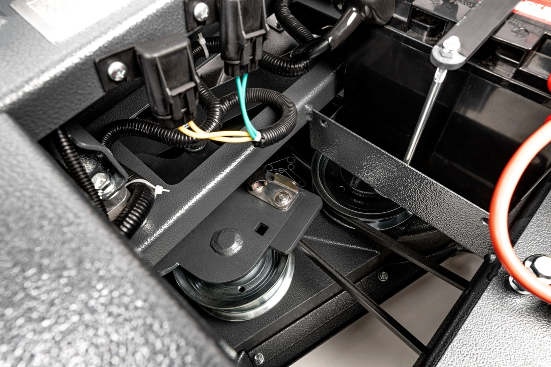 Każda kosiarka zapewnia komfort, zapewniając płynną jazdę bez względu na ukształtowanie terenu. Wysokim oparciem siedzenia z naturalnym przepływem powietrza zwiększa komfort pracy poprzez wspieranie górnej części pleców podczas dłuższych okresów koszenie, utrzymując chłód. Do podnoszenia pokładu nożne oferuje szybki i łatwy regulacja wysokości koszenia. Czułe elementy sterujące i bez wysiłkowe wrażenia z jazdy umożliwiają łatwe pokonywanie ciasnych zakrętów, koszenie wysokiej trawy i pokonywanie wzniesień , eliminując jednocześnie wstrząsy podczas ruszania i zatrzymywania się.