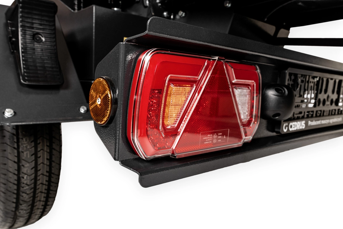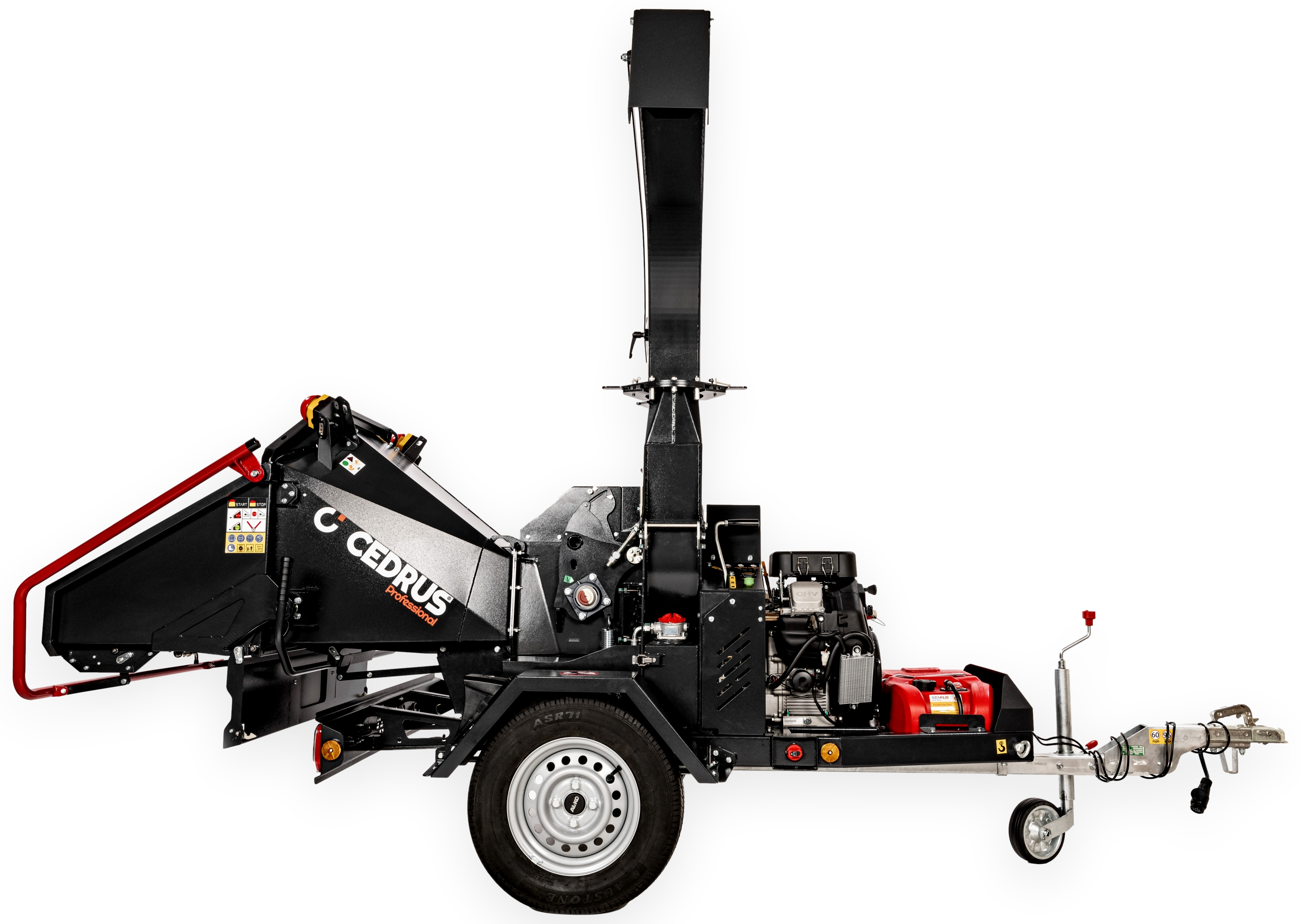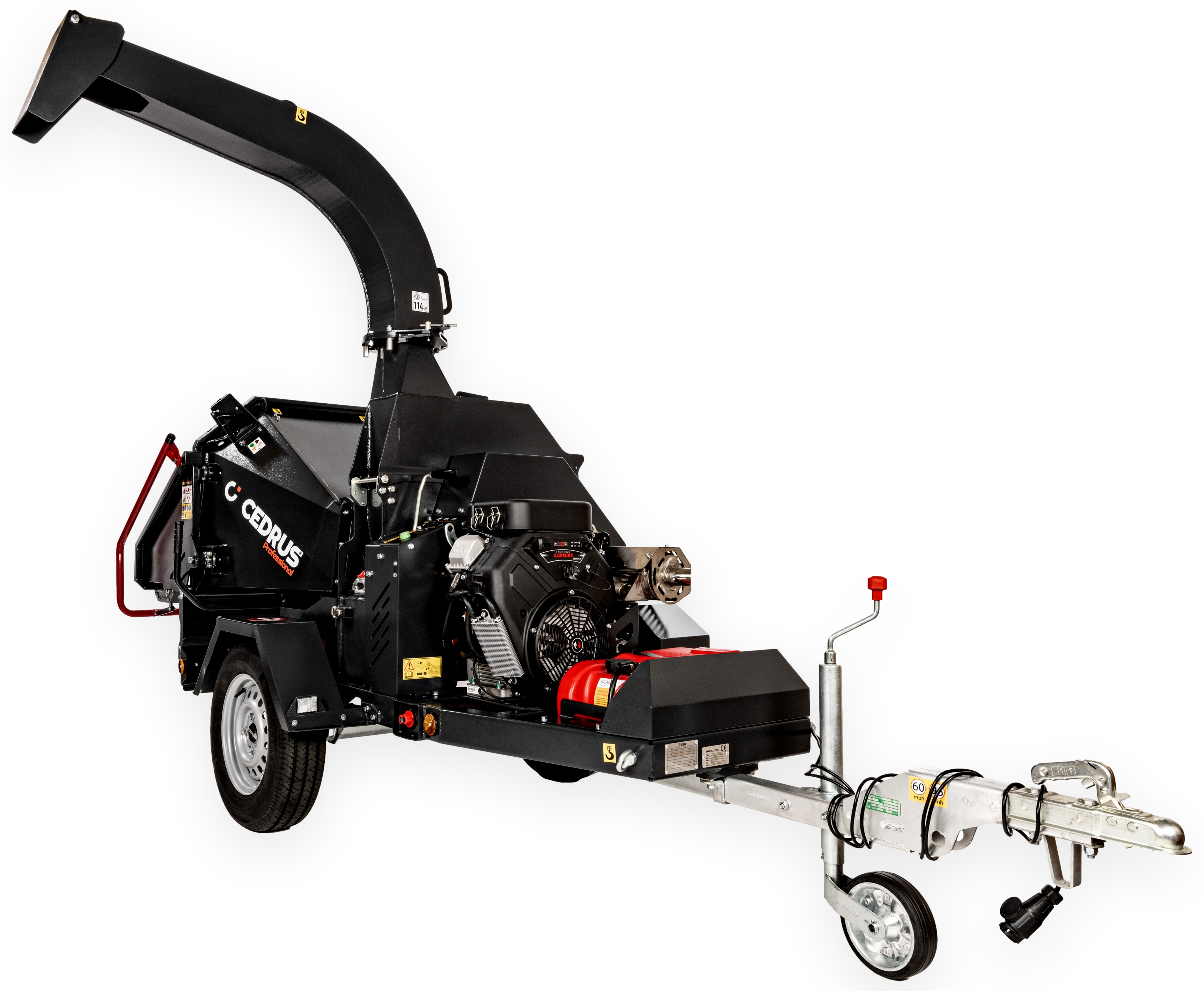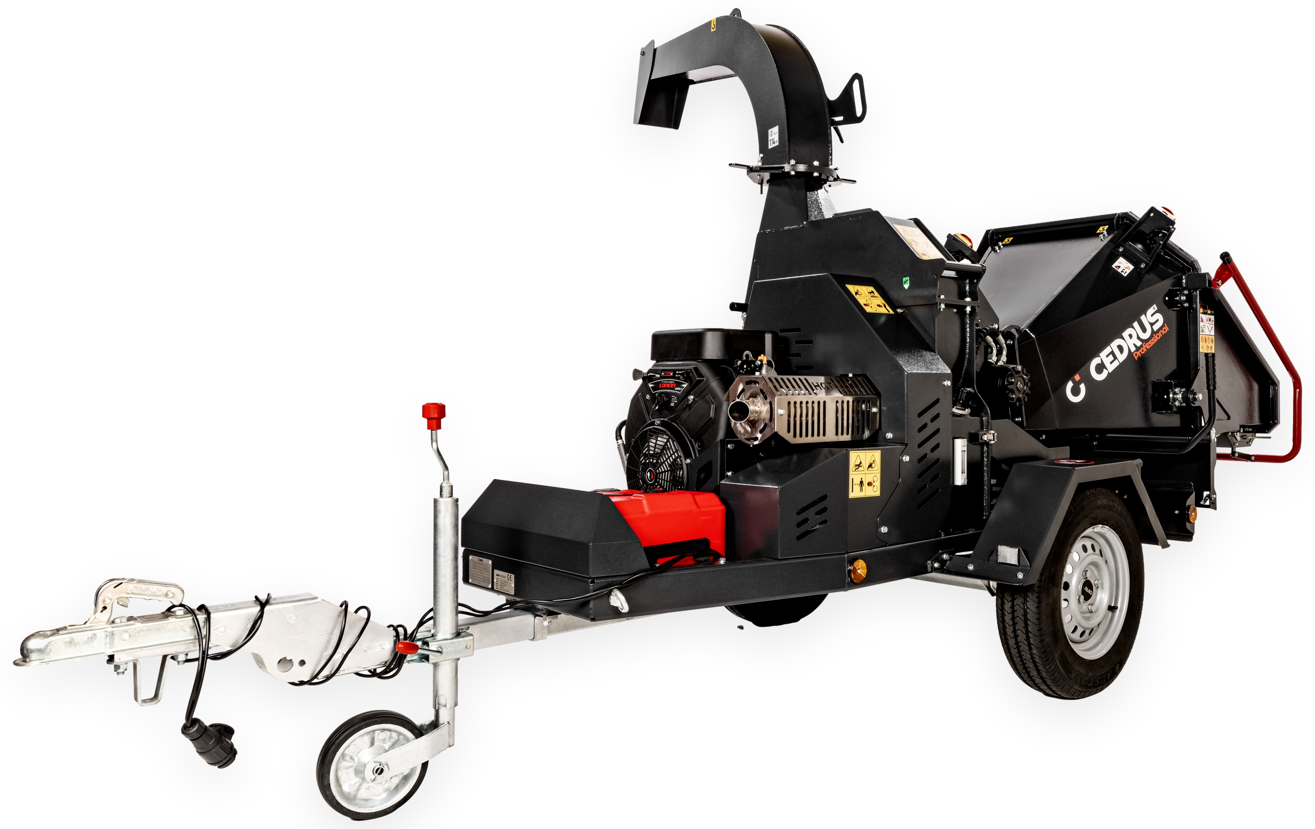 Cedrus RBD16 jest wyposażony w przyczepkę ALKO z homologacją drogową, co umożliwia łatwe i bezpieczne przewożenie rozdrabniacza po drogach publicznych.