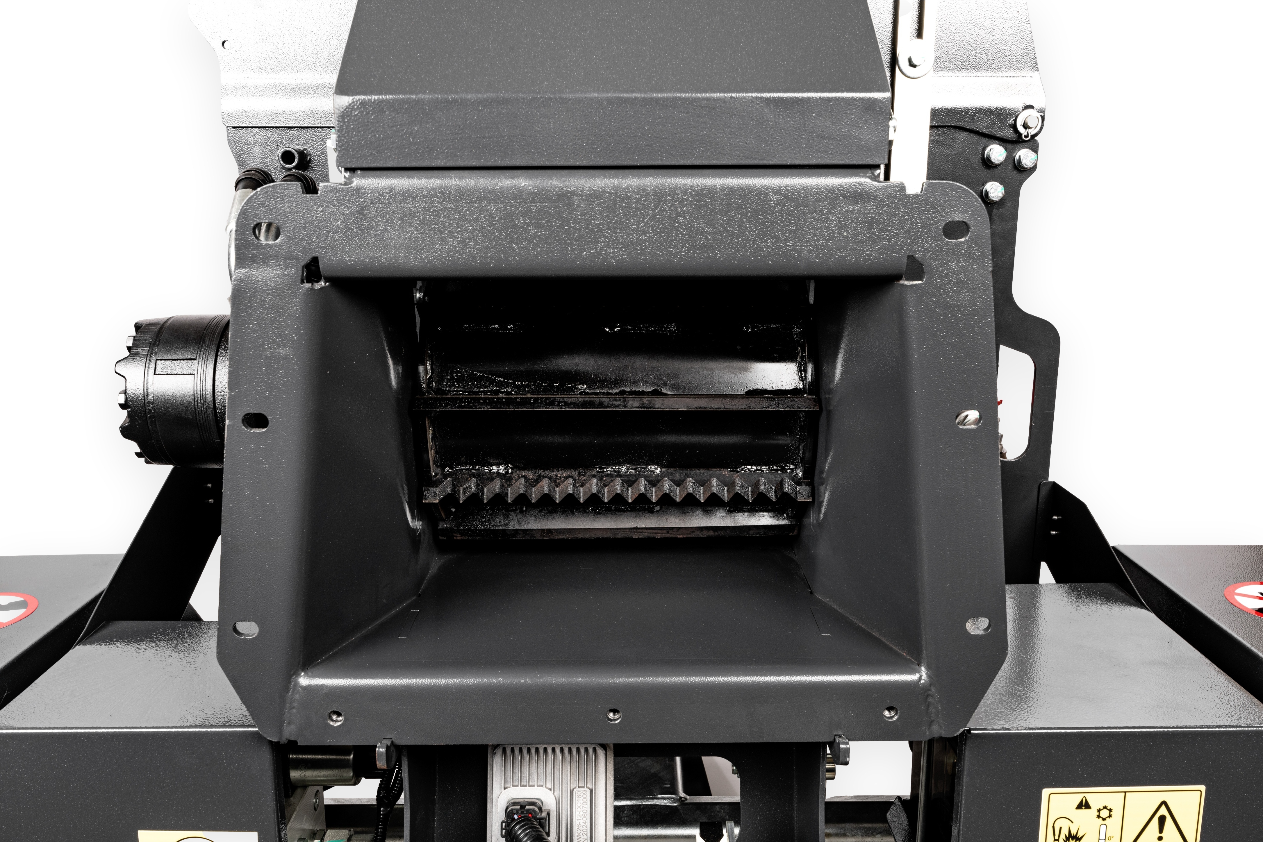 Bezobsługowość przy podawaniu materiału i maksymalny komfort pracy zapewnia dedykowany podajnik hydrauliczny z płynną regulacją prędkości i kierunku obrotu i systemem Nostress, który na bieżąco kontroluje ilość materiału podawanego do komory załadowczej, dopasowując prędkość podajnika hydraulicznego do ilości wkładanego materiału. Gdy operator włoży za dużo drzewa, system Nostress zatrzyma pracę podajnika a następnie wznowi ją po kompletnym opróżnieniu komory wirnika z nożami i bijakami. Napęd podajnika wspomagany jest pompą DANFOSS - największego na świecie, producenta pomp i przekładni hydrostatycznych do zastosowań profesjonalnych;